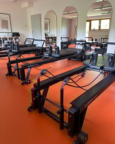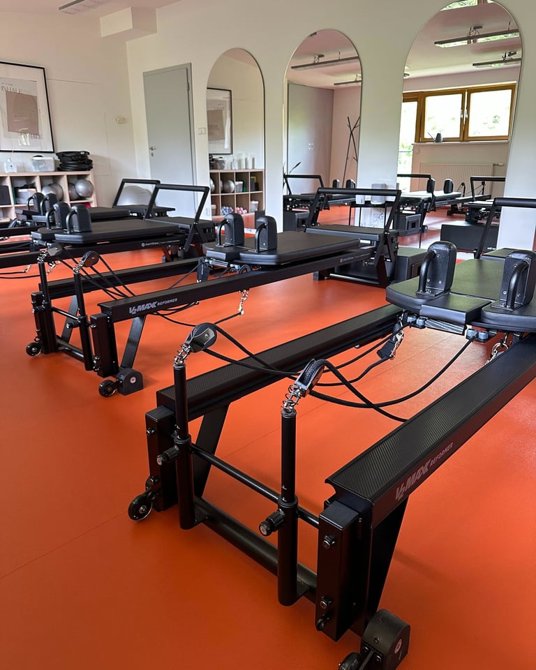 - Pracujeme s kvalitními Reformer stroji a vždy s využitím dalších pilates pomůcek.